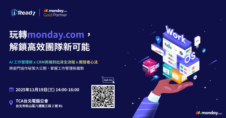 monday.com 茶會交流工作坊,帶你一次掌握三大實作主題:一站式 CRM 流程、工作管理與 monday AI、開發者心法。專為專案管理者、銷售主管及希望提升團隊效率的專業人士打造。