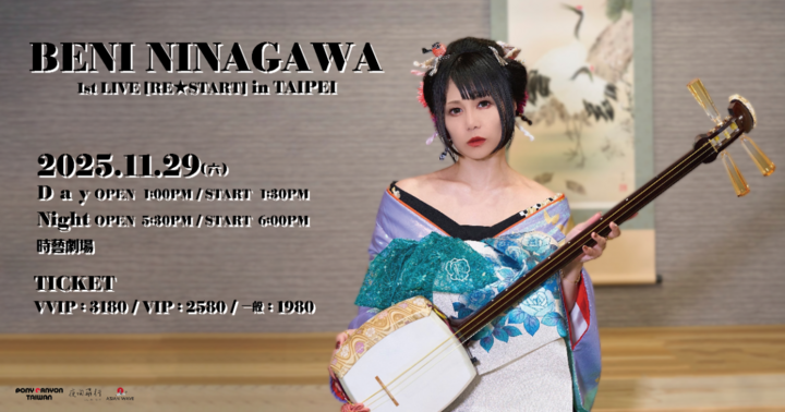 蜷川紅1st LIVE 【RE★START】 in TAIPEI 和樂器樂團的津輕三味線演奏家 『蜷川紅』以個人身份首度來台開唱! 【RE★START】 蜷川紅的音樂新章,就此開幕!