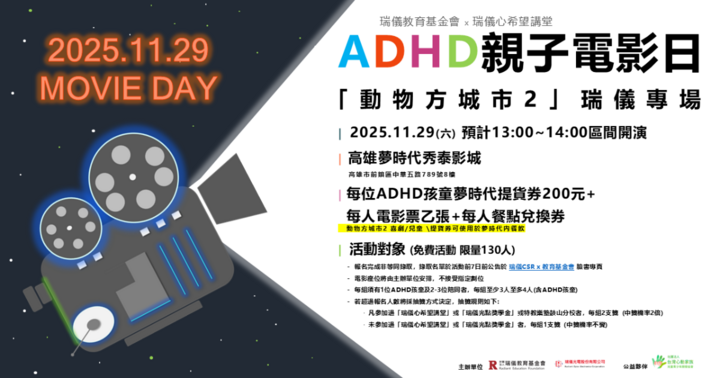 2025/11/29(Sat)開放登記Family 【活動報名已額滿】ADHD親子電影日_不怕吵電影日_動物方城市2