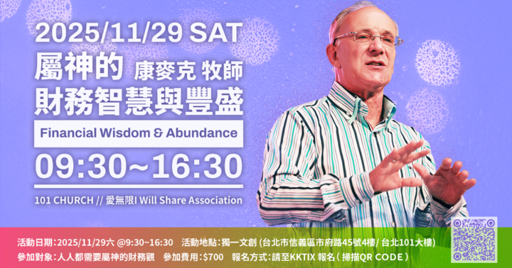 這場一日活動將帶領參加者深入探討神的財務原則,從「忠心管家」的角色出發,學習如何在信心中做出智慧的財務決策,並經歷從神而來的真實供應與自由。
