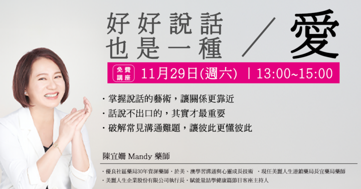🔑 課程亮點: 🔶掌握說話的藝術,讓關係更靠近 🔶話說不出口的,其實才最重要 🔶破解常見溝通難題,讓彼此更懂彼此