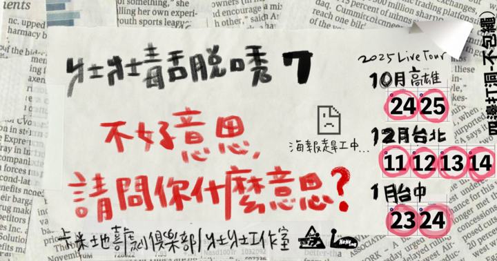 Entertainment 2025台北喜劇節:【12/11】壯壯毒舌脫口秀 7 :《不好意思,請問你什麼意思 ?》