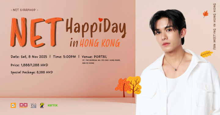 人氣泰國演員NET將會嚟到香港與大家見面啦!各位HAPPINET準備好未?想同NET渡過愉快嘅一日,就一定要嚟參與 “NET HappiDay in HONG KONG” 粉絲見面會!除咗豐富嘅粉絲福