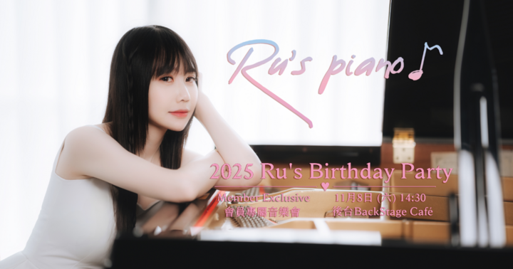 RuRu 2025 生日音樂暨粉絲同樂會!今年因手傷的緣故無法於音樂廳舉辦鋼琴獨奏會,這次是「深度會員專屬場」的模式,並於展演空間來舉辦!活動內容除了有現場鋼琴演奏以外,還會有互動環節及一對一簽名會!