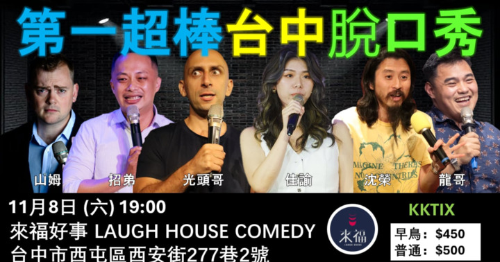 第一超棒台中脫口秀 台中!你們准備好了嗎?我們11月8日(六)在來福好事戲劇俱樂部要舉辦歷史上最優秀,最好笑,最超級真棒的單口喜劇脫口秀演出!