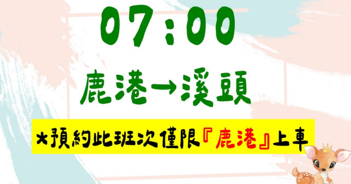 注意事項: 請務必於發車前10分鐘至車站報到,逾時將由現場候位乘客替補,並請您改為現場候位。 超過3次未依規定時間報到者,將列為黑名單,不再提供預約服務。(已訂票之黑名單,將於發車前一日由系統自