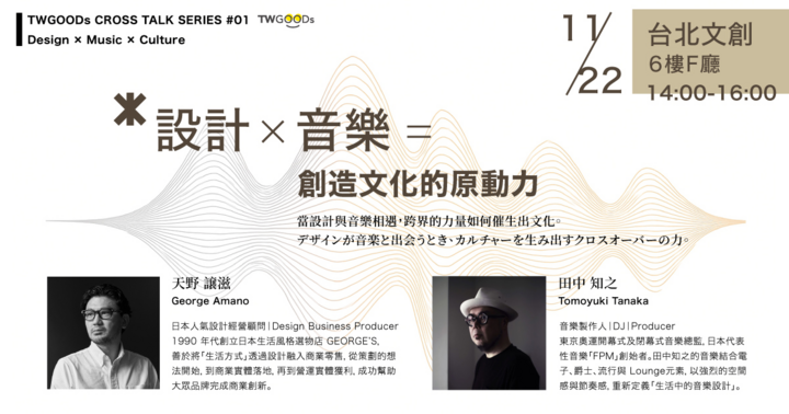 日本人氣設計經營顧問 天野讓滋 與東京奧運音樂總監 田中知之,首度於台北同台對談, 探索「設計 × 音樂」如何成為創造文化的原動力。