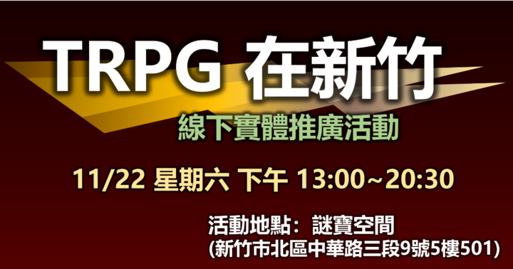 同好 2025.11.22 📢TRPG在新竹📢 線下實體推廣活動