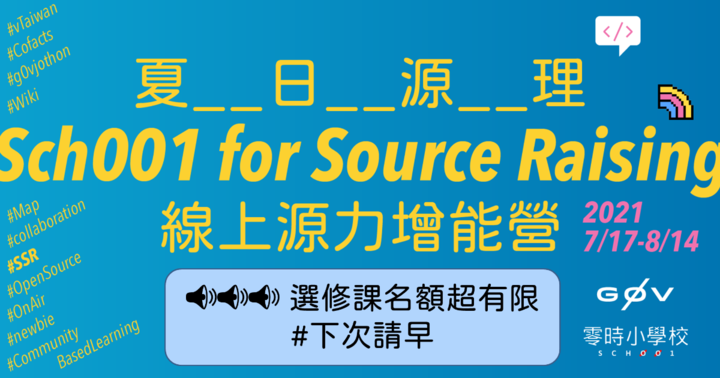 零時小學校「夏日源理」2021 線上源力增能營是 g0v 貢獻者與 g0v 揪松團協作推出的線上課程計畫,以「開源、協作、開放學習」為主軸,期盼以開放的方式,在線上陪伴所有學習者。