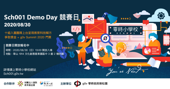 零時小學校(Sch001)是聚焦在教育的 g0v 專案,將代表數位原生世代的 0 與 1 放入代表教育的「學校(School)」,從零重新思考學校的角色,代表教育與數位社群的連結與協作。