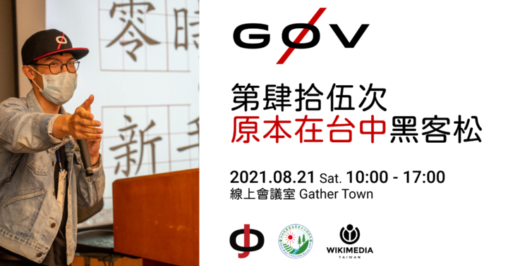 g0v 第肆拾伍次大黑客松將在 2021.08.21(六)於線上舉辦,歡迎公民、鄉民、憤青等諸眾,帶著熱血來盡一己之力,開源協作參與社會。