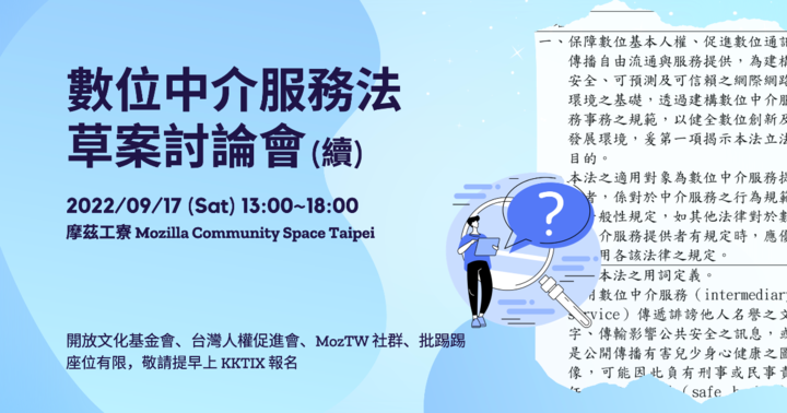 言論自由、錯假訊息、民主韌性、平台責任、檢舉下架異議申復、一頁式詐騙、透明度報告、網路中立與安全港,99 個願望一次滿足?數位中介服務法草案,讓我們一起逐條討論。