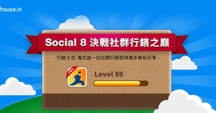 Social 8 行銷講堂 2014年,由國內線上直播平台 LIVEhouse.in 主辦,連續 8 周, 邀請 1 位社群行銷武林高手無私分享,讓你從 Facebook、Youtube、Googl